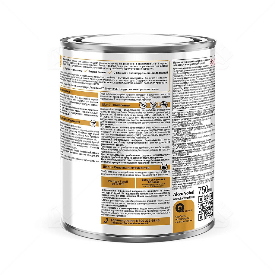 Краска для металлических поверхностей алкидная Hammerite гладкая RAL 9005 черная 0,75 л.