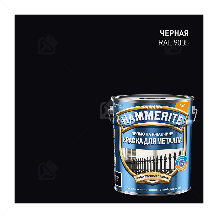 Краска для металлических поверхностей алкидная Hammerite гладкая черная RAL 9005 5 л