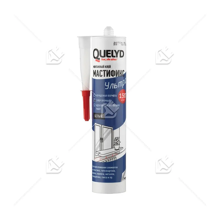 Quelyd Мастификс «Ультра» специально разработан для приклеивания различных элементов и материалов для декорации и строительства. Рекомендован для приклеивания дерева, ДСП, ДВП, OSB к кирпичу, камню и бетону. Также подходит для EPS и XPS, приклеивания керамической плитки к пористым основаниям. Только для внутренних работ.