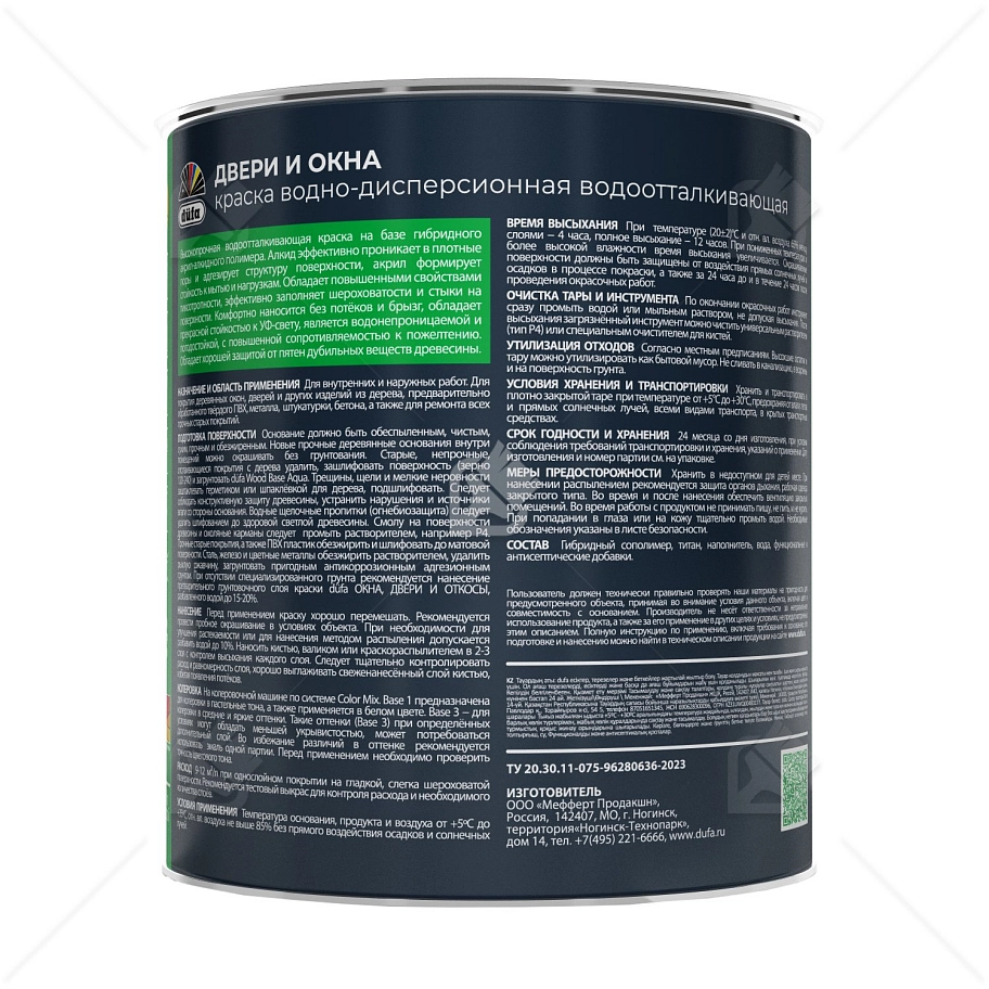 Краска для окон, дверей и откосов Dufa акриловая полуглянцевая база 3 0,65 л