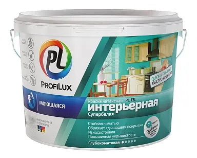Краска для стен и потолков для влажных помещений латексная Profilux PL-13L глубокоматовая супербелая база 1 14 кг.