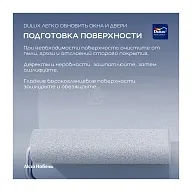 Высококачественная полуматовая краска для дерева, пластика Дюлакс (Dulux) Окна и двери на водно-дисперсионной основе, имеет прочное и долговечное покрытие устойчиво к УФ-излучению, не меняет цвет со временем. Эластичное покрытие: выдерживает перепады влажности и температуры внутри и снаружи помещения. Окрашенные поверхности не слипаются после высыхания. Не требует грунта на новых и ранее окрашенных материалах. Краска для дерева и пластика Dulux Окна и двери легко наносится, отлично разравнивается, образуя ровную поверхность.