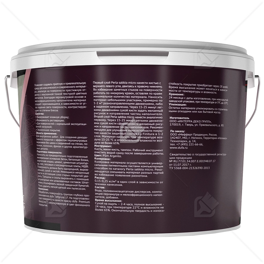 Покрытие декоративное Dufa Creative Perla Sabbia micro эффект металлизированный перламутр база ARGENTO 5 кг