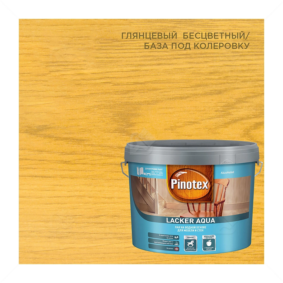 Лак для дерева на водной основе колеруемый Pinotex Lacker Aqua 70 глянцевый 9 л.