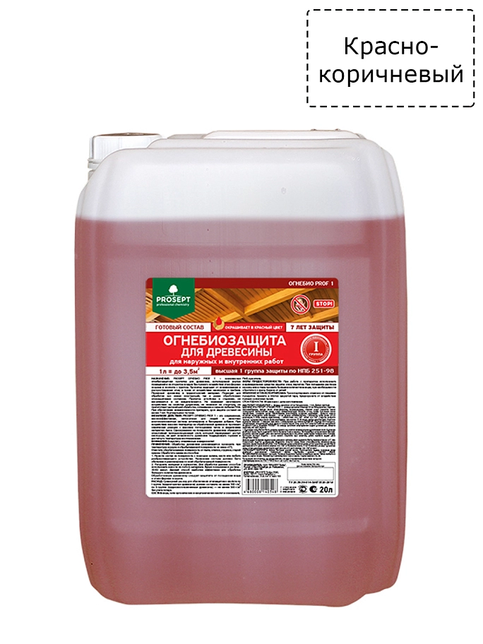 Состав огнезащитный для древесины Prosept Огнебио Prof-1 красно-коричневый 20 л. пожарный сертификат ГОСТ