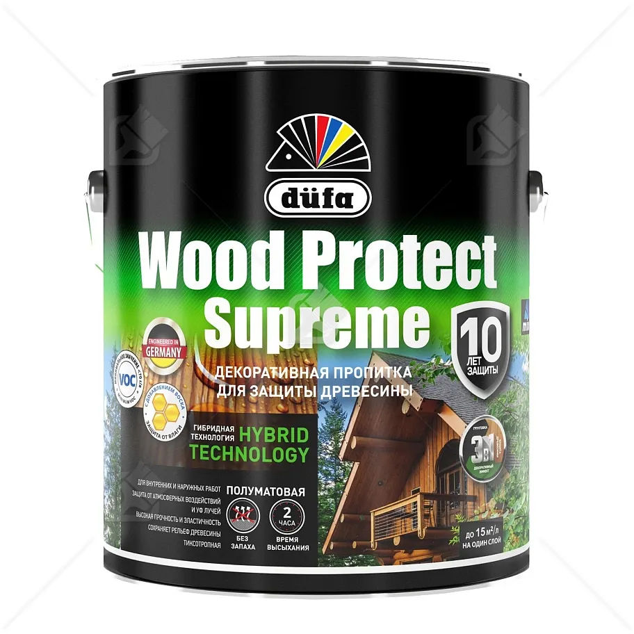 Купить декоративную пропитку Dufa Wood Protect Supreme для защиты древесины можно в нашем интернет-магазине. Этот высокопрочный гибридный состав предназначен для внутренних и внешних работ. Он идеально подходит для строительства из бруса, бревна, обшивки, окон, дверей и других вертикальных поверхностей. Технология Hybrid обеспечивает глубокое проникновение, высокую прочность и быстрое высыхание. Твердый воск в составе улучшает водоотталкивающие свойства и создает гидрофобное покрытие. Формула 3 в 1 сочетает в себе грунтовку, защиту от УФ-лучей и декоративный эффект. Доступная цена Dufa Wood Protect Supreme только у нас!