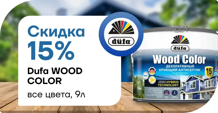 Скидка 15 % на декоративный кроющий антисептик Dufa Wood Color (9 л