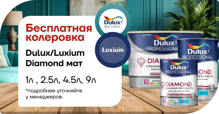 бесплатная колеровка доступна на всю линейку Dulux Diamond Matt;
